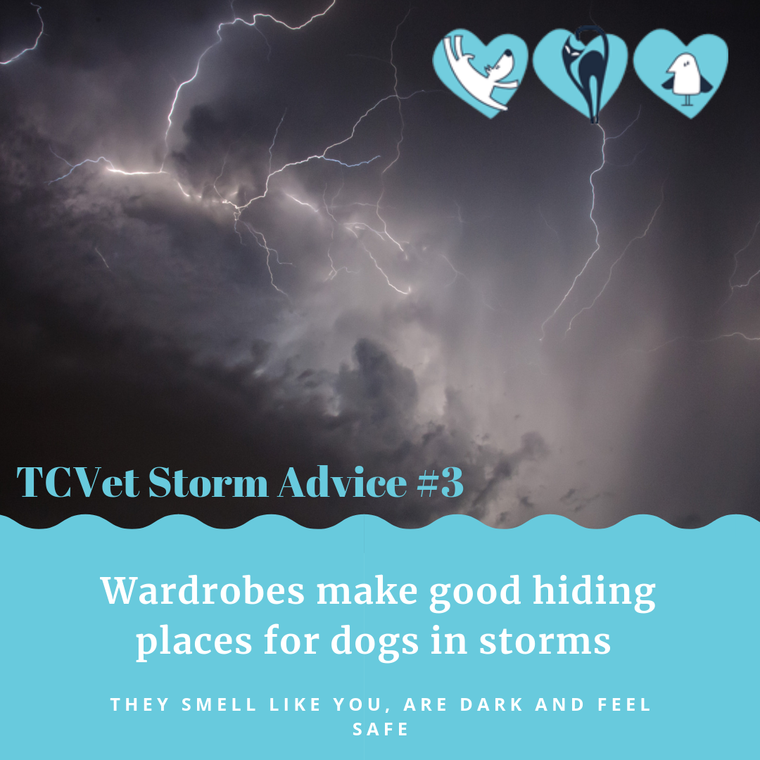 A wardrobe will make a great den during a storm! And it smells like you! But it is best to get your pet used to using the wardrobe when there is no storm around too.