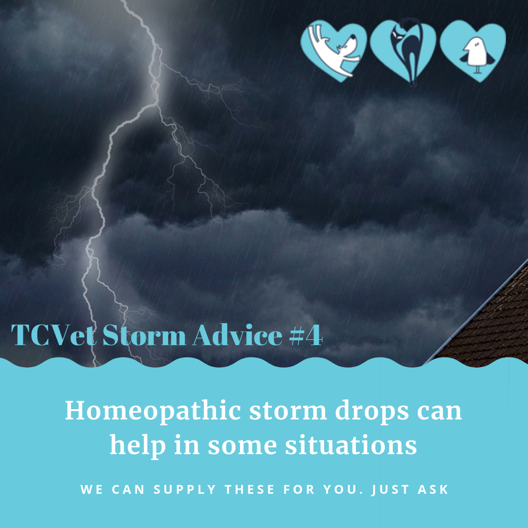 Often dogs respond positively to the pheromone sprays and collars such as Adaptil during a storm. They are associated with happiness, calm and security. Homeopathic drops can also be used to great effect- ask us at the Tweed Coast Vet about some of your options.